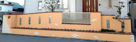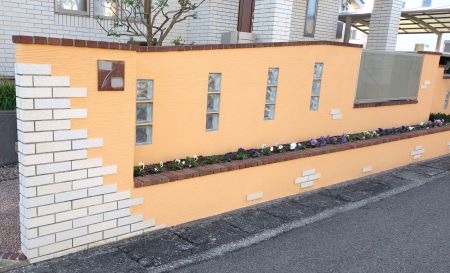 もともとお洒落でデザイン性のある門壁ですが塗装工事(リフォーム)をおこない